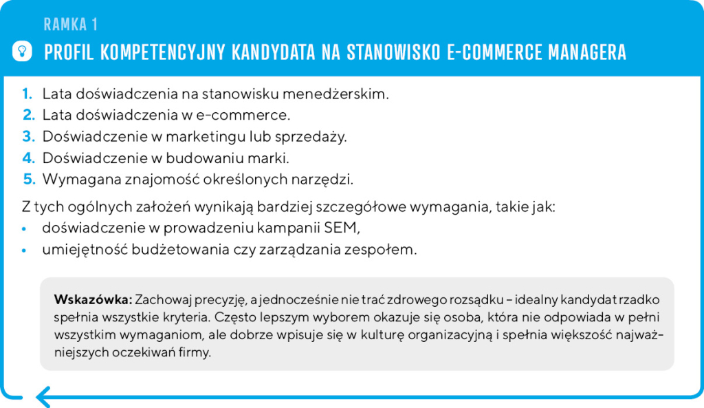 W kontekście rozmowy kwalifikacyjnej i całego procesu rekrutacji warto poznać typowe błędy, które często popełniają firmy zatrudniające e-commerce managerów. Ich listę znajdziesz w ramce 5. Świadomość tych pułapek pozwala prowadzić rozmowy w sposób uporządkowany, a jednocześnie zwiększa szansę na zatrudnienie osoby najlepiej dopasowanej do potrzeb firmy.