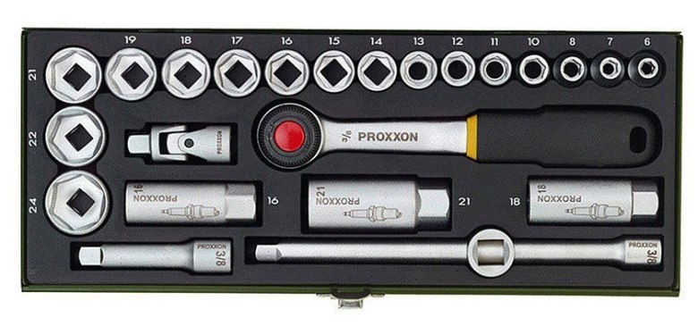 Zestaw kluczy nasadowych 3/8″ 24el. PR23110 PROXXONZestaw kluczy nasadowych 1/4″ NEO – doskonały do drobnych zadań