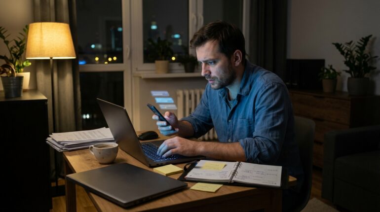Kluczem jest rygorystyczne planowanie i oddzielenie czasu pracy od czasu prywatnego. Warto korzystać z narzędzi do zarządzania zadaniami (np. Asana, Trello) i stosować bloki czasowe. Niezbędne jest też zadbanie o regenerację – praca 7 dni w tygodniu na dłuższą metę jest nieefektywna i groźna dla zdrowia.