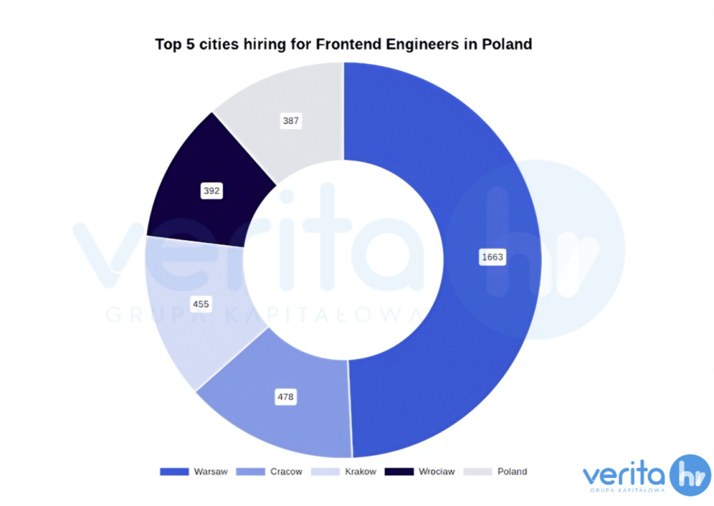 Recent Verita HR data show over 5,800 candidates across Poland, including about 1,700 in Warsaw, 1,000 in Kraków, and around 690 in Wrocław based on LinkedIn searches.